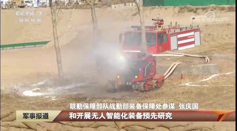 近日,我公司生產的全地形消防滅火機器人接連(lián)在“CCTV-7國防軍事頻道(dào)播報--【軍事報道】聯勤保障部隊:無人 智能(néng)裝備技術推動保障能(néng)力提質增(zēng)效、【國防軍事早報(bào)】探索聯勤新平台無人裝備新力量拓展新途徑”。