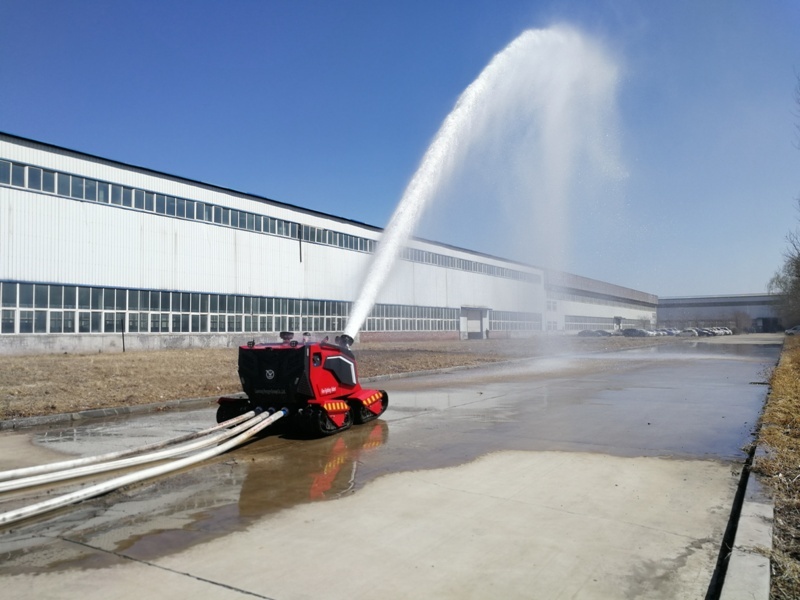 本產品采用四驅履帶輪式全地形越(yuè)野底盤,具有超高(gāo)上下樓梯平衡性能和越野(yě)性能,整機尺寸小,重心低,最大爬坡角度40°,垂直越障≥400mm,整機配備TFT季風120L水、泡沫炮,最大射程水90m,混合液80m,具有很強的抗電(diàn)磁幹擾性。
